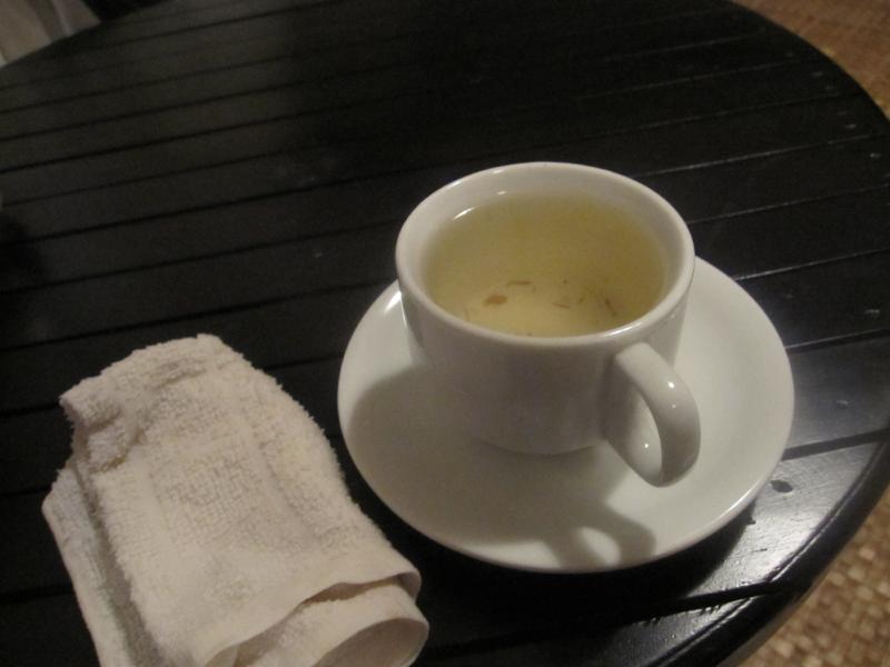 マッサージ終了後は待ち合い室にて冷たいタオルと暖かいお茶を
