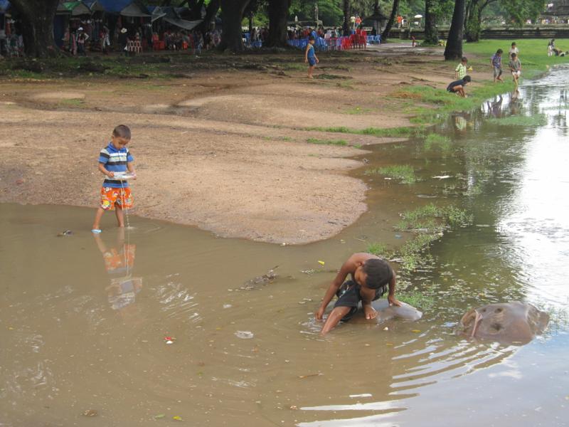 アンコールワット近くの水辺では現地の子供達が水遊びをしてました。