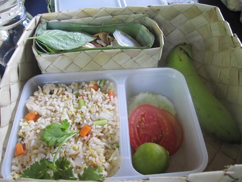 お弁当はヤシの皮でできたお弁当箱に入っていました。