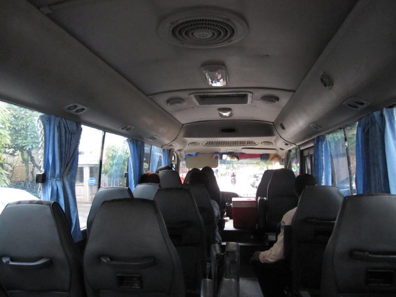 初日のツアーは参加人数が多いため中型バスでの移動になりました。