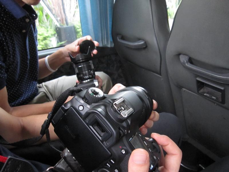 バス車内でのカメラ操作レクチャー。