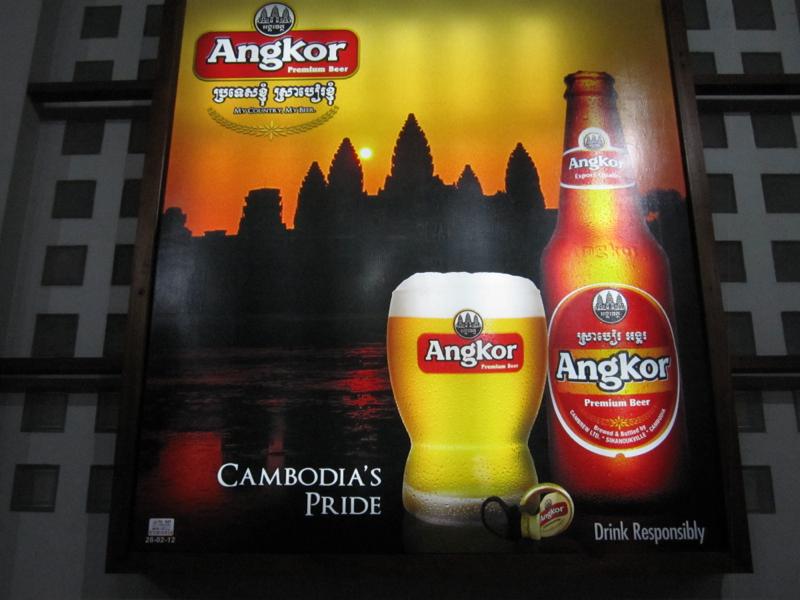 カンボジア名物のアンコールビールの大きな看板がありました。