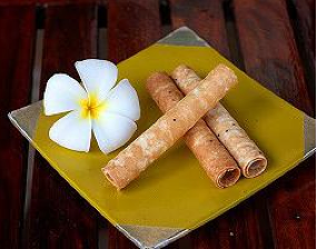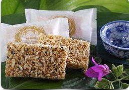 特有のお米で作った麺を固めて日本風の「おこし」のようにしたお菓子です。