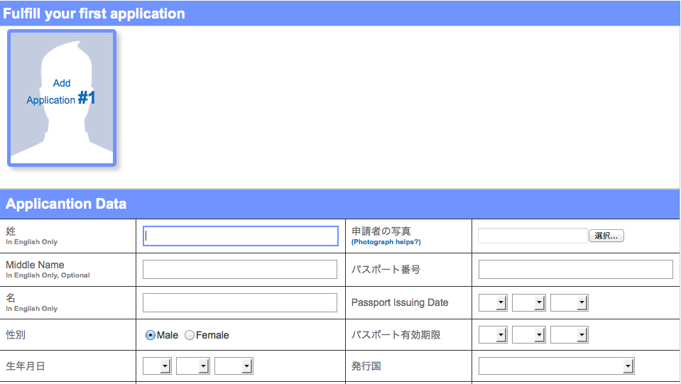 Middle Name:必要な方はローマ字表記で(パスポートを参照)