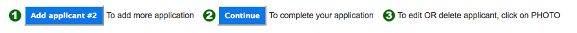 もし、別の人を追加申請する場合は「①Add applicant #2〜」をクリックし、