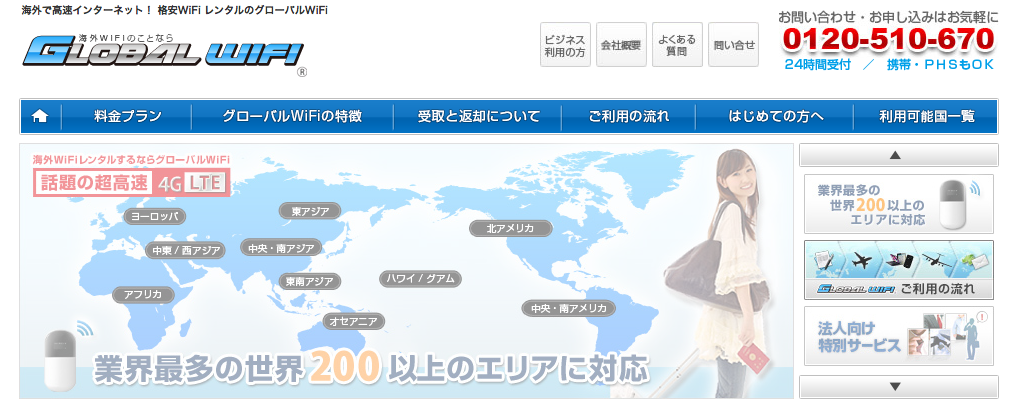 まずはグローバルWiFiのホームページにアクセスしましょう。