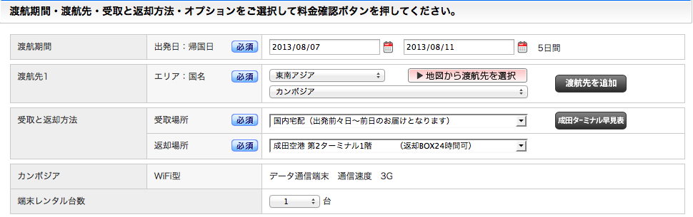 「出発日と帰国日」は受け渡しと返却に必要になります。