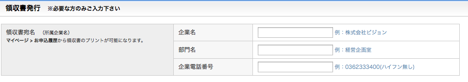 また、領収書が必要となる場合は、「企業名」「部門名」